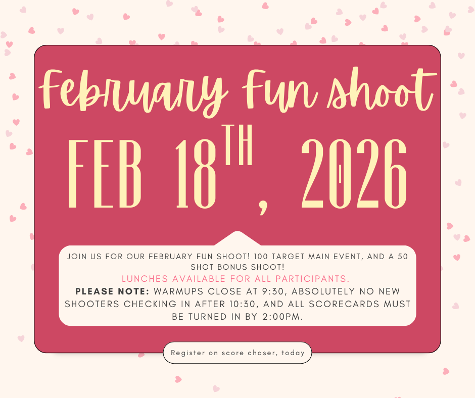 COURSES WILL CLOSE AT 10:30 THIS DAY FOR THIS EVENT, REGARLDESS OF SHOOT TIME START. THANK YOU FOR YOUR UNDERSTANDING.