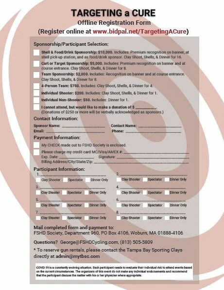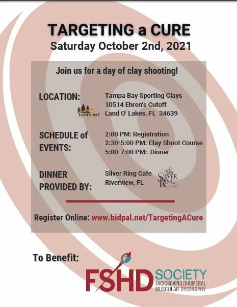 FSHD Society Saturday, October 2, 2021 2:00 PM 7:00 PM 14:00 19:00 Tampa Bay Sporting Clays 10514 Ehren Cutoff Land O Lakes, FL, 34639 United States (map) Google Calendar ICS CLICK HERE TO REGISTER