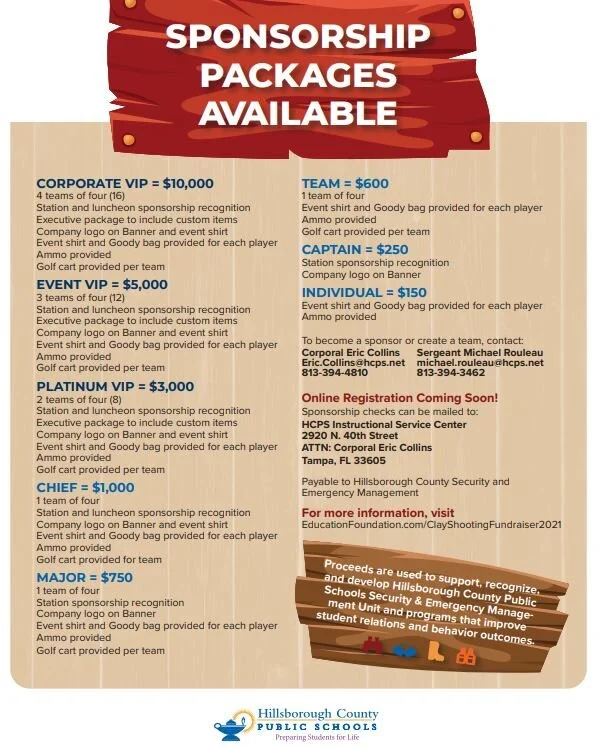 Hillsborough School Board Saturday, December 11, 2021 8:00 AM 12:30 PM 08:00 12:30 Tampa Bay Sporting Clays 10514 Ehren Cutoff Land O Lakes, FL, 34639 United States (map) Google Calendar ICS REGISTER CLICK HERE