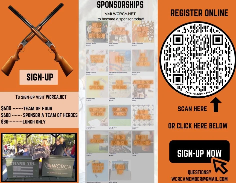 WCRCA Friday, January 14, 2022 8:00 AM 1:00 PM 08:00 13:00 Tampa Bay Sporting Clays 10514 Ehren Cutoff Land O Lakes, FL, 34639 United States (map) Google Calendar ICS CLICK HERE FOR REGISTRATION